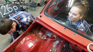 Źle robi się blacharkę kiedy auto było wcześniej rozbite i naprawiane z pomocą palnika, a elementy spawane po rancie bez nawiercania. Takie były czasy. Z tego powodu miałem utrudnione zadanie, bo gdy do tego doda się, tak zwane, części wyprodukowane w prl'u przez rzemieślników to robota jest jeszcze gorsza bo nic nie pasuje.